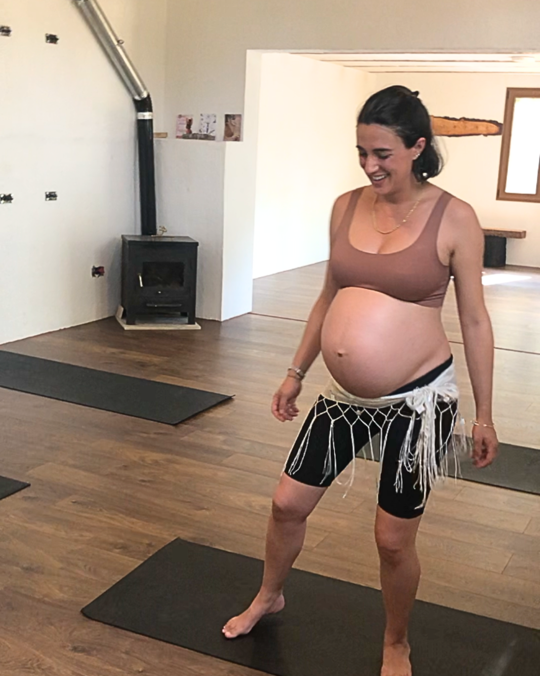 1. Cuerpo físico: Conciencia corporal, trabajo de fortalecimiento y relajación del suelo pélvico, trabajo de fuerza adaptado al embarazo, danza del vientre y estiramientos de Yoga prenatal